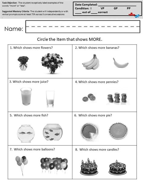 More Or Less Worksheets Autism Worksheets Free